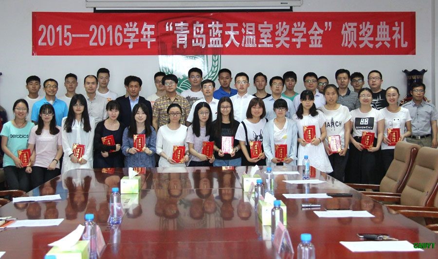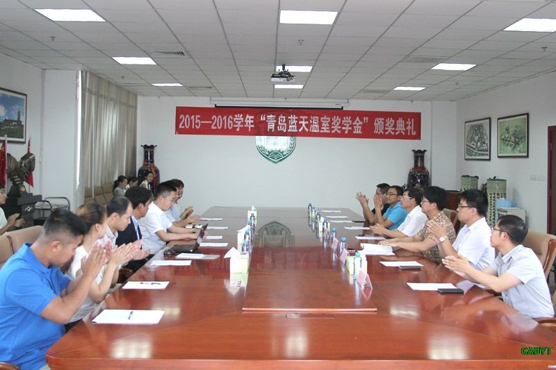 “蓝天温室奖学金”是青岛蓝天温室有限公司总经理杜紫龙先生2015年在我院设立的,目的是奖励设施农业科学与工程、市场营销两个专业成绩优秀学生,鼓励学生创新。此次获奖的14名同学每人获得蓝天企业2000元奖金,10支小队分获3000元至1000元不等的奖金。