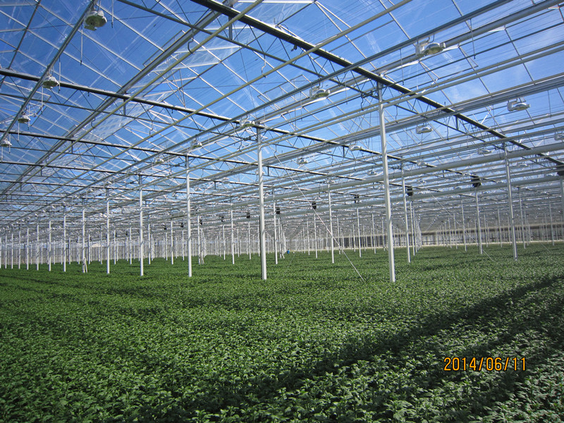 主体结构制作完毕后整体热镀锌,无裸露焊接点用镀锌螺栓连接,覆盖材料采用单层、双层浮法玻璃、钢化玻璃或中空钢化玻璃,玻璃的镶嵌采用温室专用铝合金型材,玻璃的边缘与铝合金型材连接处采用抗老化乙丙橡胶条密封。