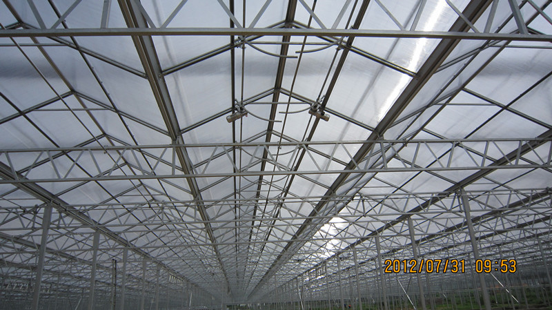 主体结构制作完毕后整体热镀锌,无裸露焊接点用镀锌螺栓连接,覆盖材料采用单层、双层浮法玻璃、钢化玻璃或中空钢化玻璃,玻璃的镶嵌采用温室专用铝合金型材,玻璃的边缘与铝合金型材连接处采用抗老化乙丙橡胶条密封。